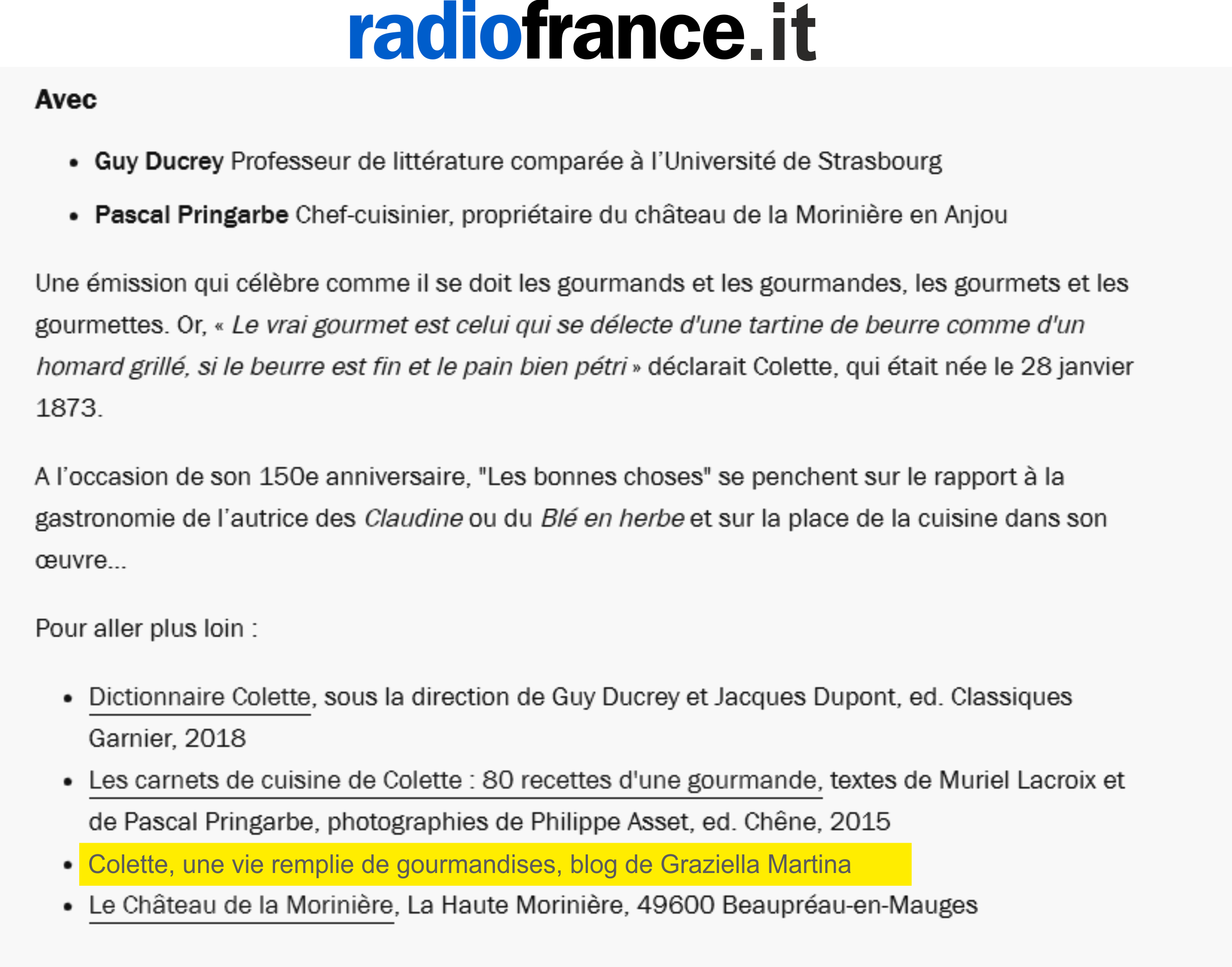 Entrées ricette - Colette - Une vie remplie de gourmandises de Graziella Martina